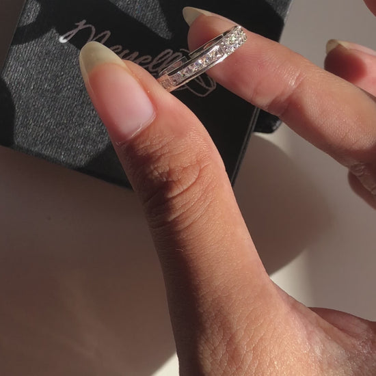 Make a statement with the Celeste Shine Ring, a stunning blend of textures and sparkle. Crafted in durable stainless steel, it features a mix of pave-set stones and sleek glass stones for a dynamic, radiant look. Perfect for stacking or wearing solo, this ring elevates any outfit with its modern, elegant charm.
