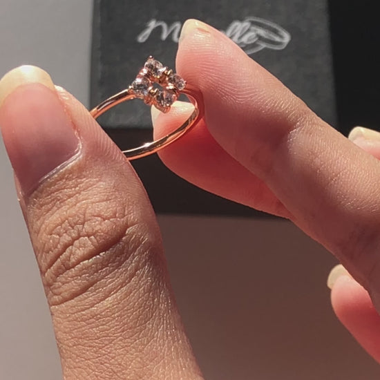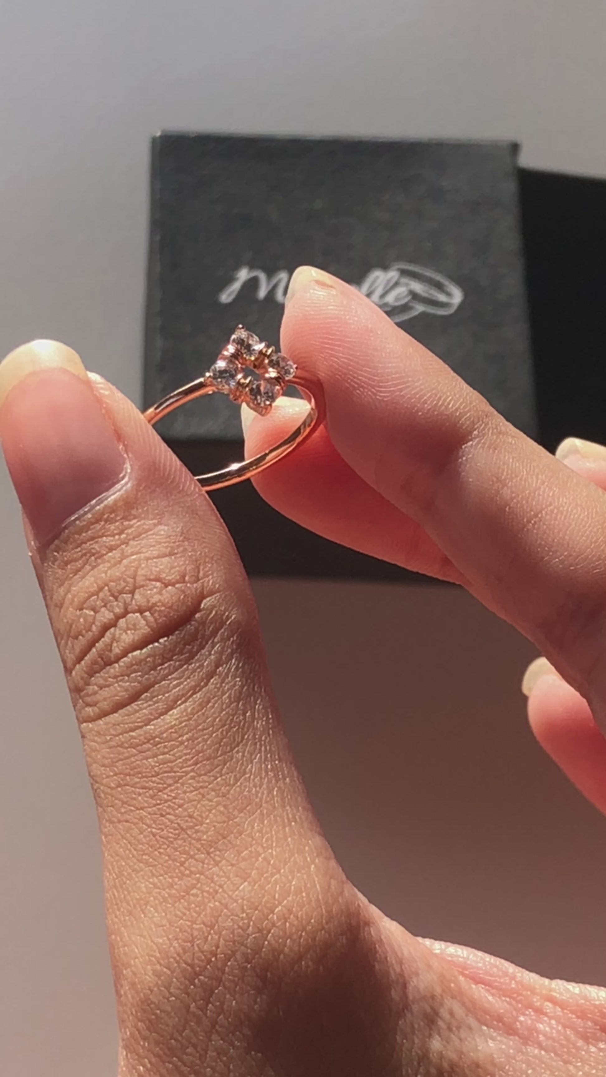 A dainty zircon ring featuring four sparkling zircon stones arranged in a diamond shape. Minimal yet radiant, it captures the essence of subtle luxury a piece that feels personal, timeless, and effortlessly chic.